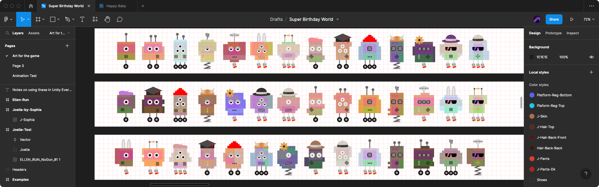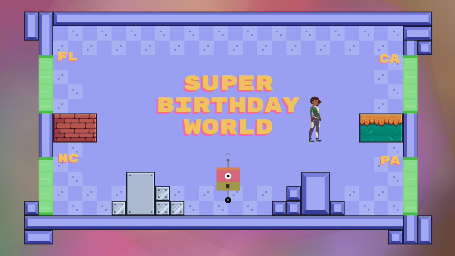 A 2D platformer for Joelle's 50th birthday where she plays as herself to unlock birthday messages recorded by family and friends.